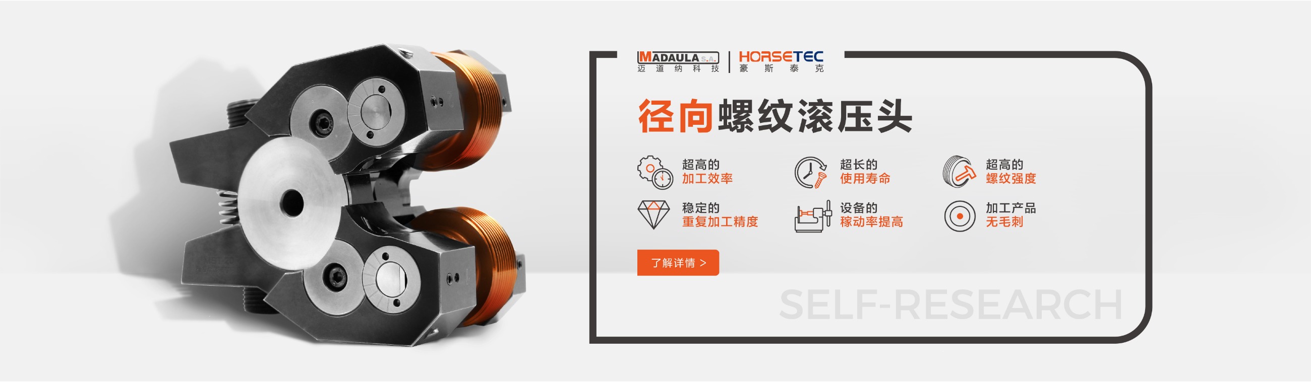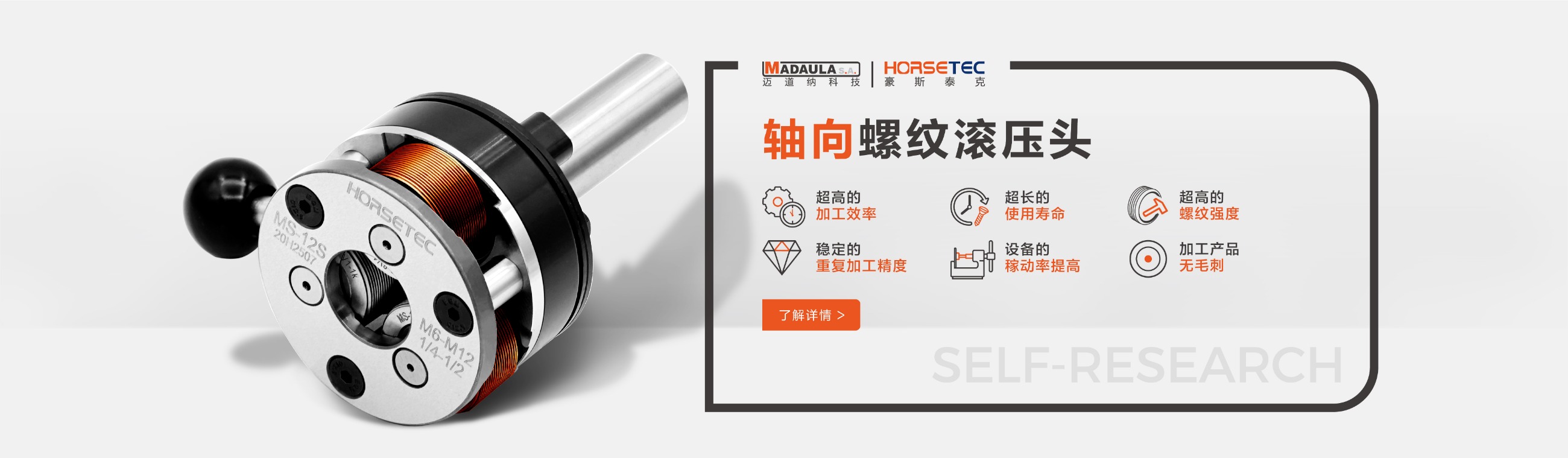 很多做機(jī)械的對(duì)螺紋滾壓頭都不陌生,它的功能和優(yōu)勢(shì)也是有口皆碑的,所以現(xiàn)在有越來越多的人愿意選擇HORSETEC螺紋滾壓工具來滾壓螺紋,而我們常見到的螺紋滾壓工具是采用鋼材料制作而成的一種滾螺紋加工工具,成功沿襲傳統(tǒng)的螺紋滾壓頭的所有優(yōu)勢(shì),比如高效率、高精度、高強(qiáng)度,除此之外,螺紋滾壓頭可以定制您的專屬logo,不僅有效提升了產(chǎn)品的檔次,給使用者帶來不錯(cuò)利益。今天要給大家說一說高質(zhì)量的螺紋滾2022-09-13