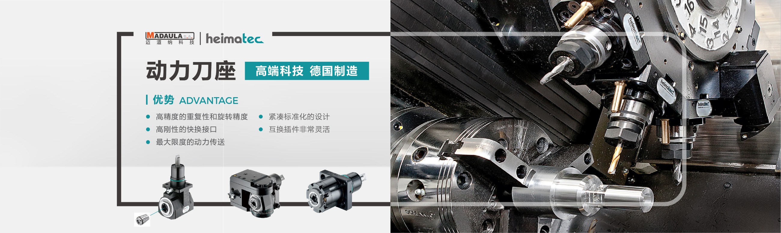 德國heimatec · 動(dòng)力刀座 -- 品質(zhì)可靠、經(jīng)久耐用、可以不間段連續(xù)工作; -- 全球各大機(jī)床廠家標(biāo)配產(chǎn)品